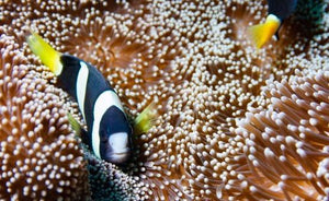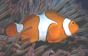 Amphiprion ocellaris di taglia piccola, pesce tranquillo di barriera che ama le anemoni, Se ne consiglia l'allevamento in coppia.
