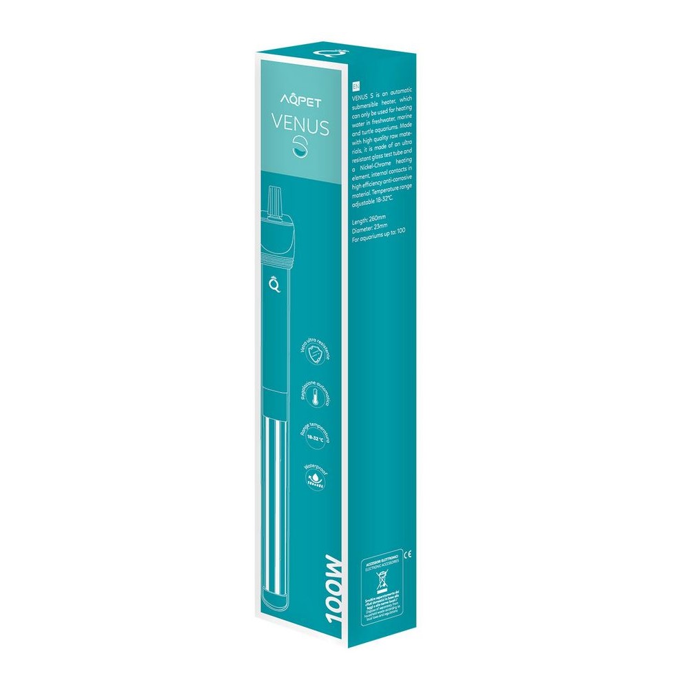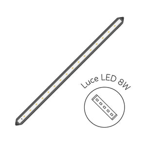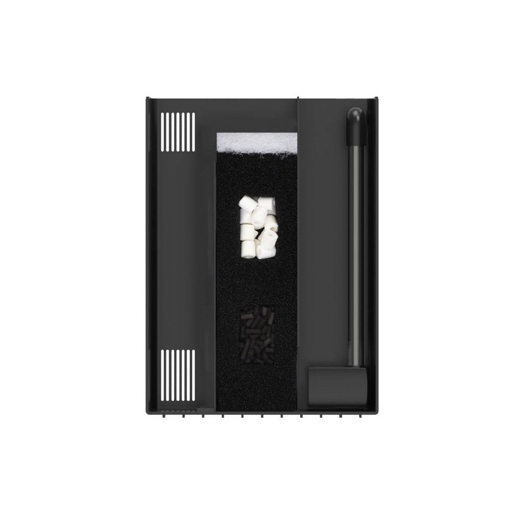 Include illuminazione LED (16 × 0,5 W a 8500 K), filtro interno Bio Box con materiali filtranti e termoriscaldatore da 100 W.