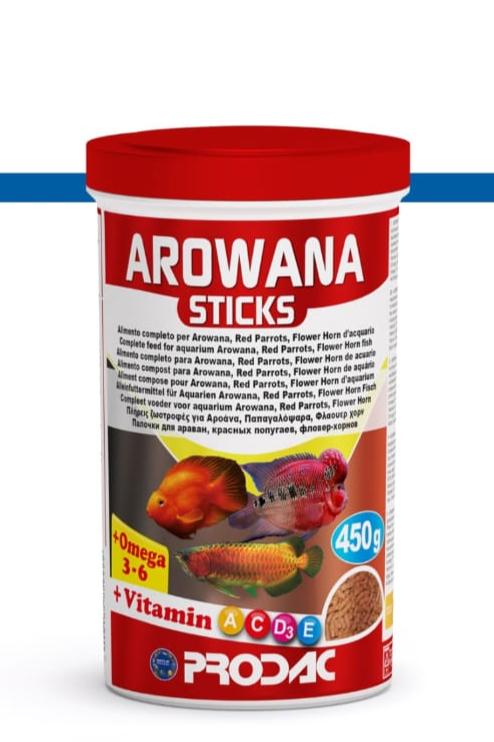 Alimento composto in sticks studiato per soddisfare le necessità nutritive dell’Arowana, Red Parrots, Flower Horn. La composizione del mangime garantisce una dieta equilibrata per pesci di taglia grande e media.