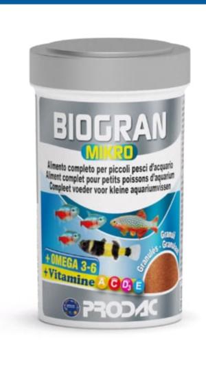 Alimento completo in granuli per tutti i tipi di pesci d’acquario di piccola taglia d’acqua dolce.
