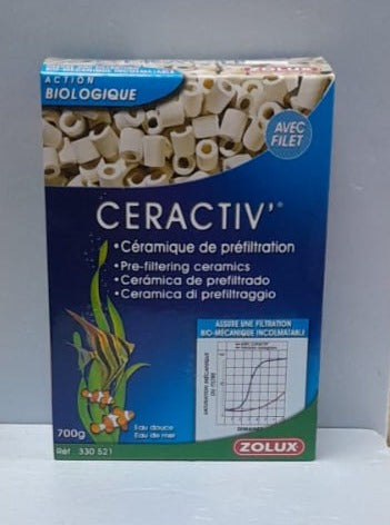 Totalmente neutra e composta da moltissimi piccoli cilindri di ceramica, Ceractiv viene utilizzata da molto tempo per la filtrazione meccanica e biologica nella depurazione dell' acquario.