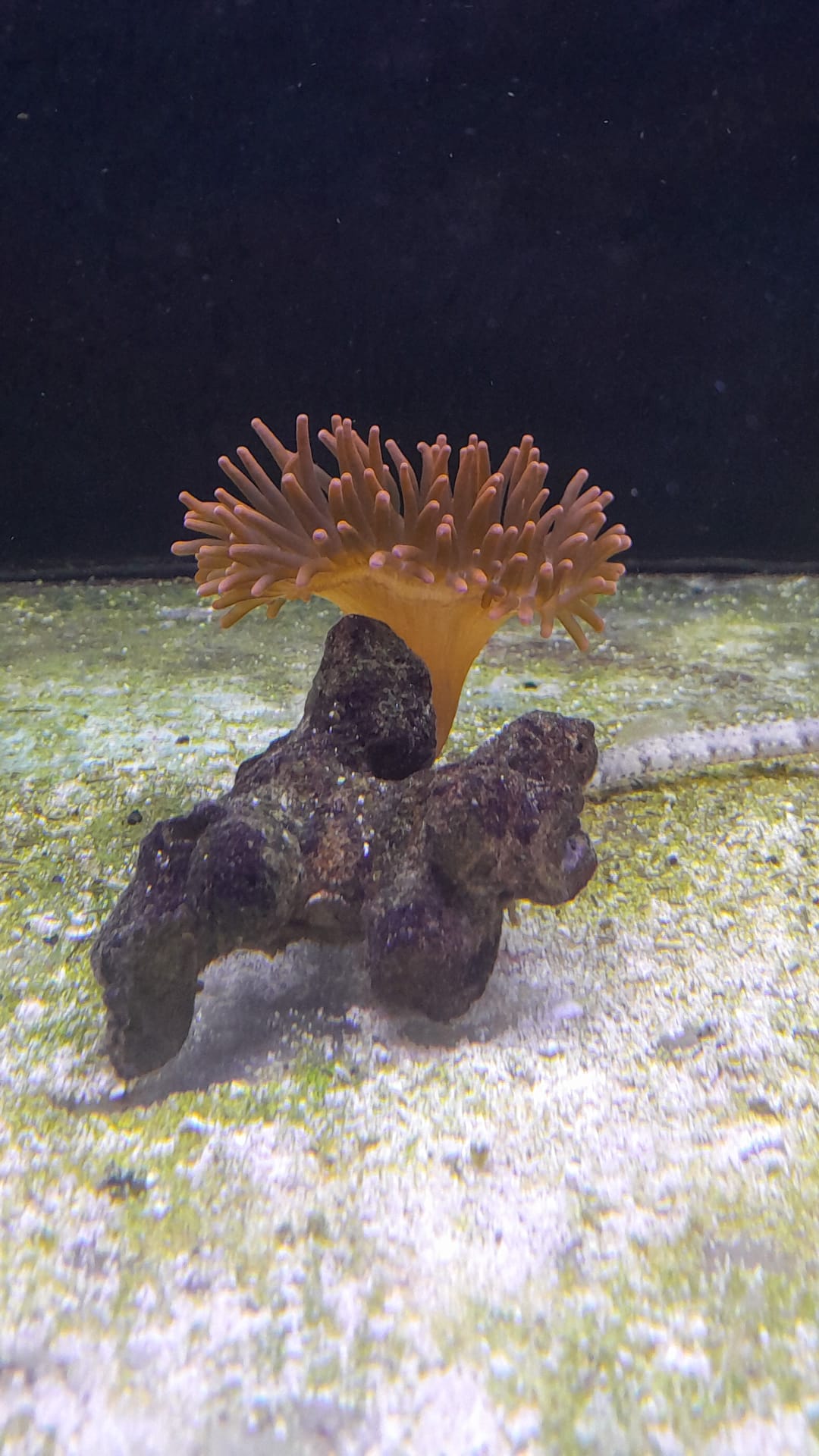 Anemone dai polipi rossi, tentacoli allungati, riesce ad entrare in simbiosi con numerose specie di pesci pagliaccio.