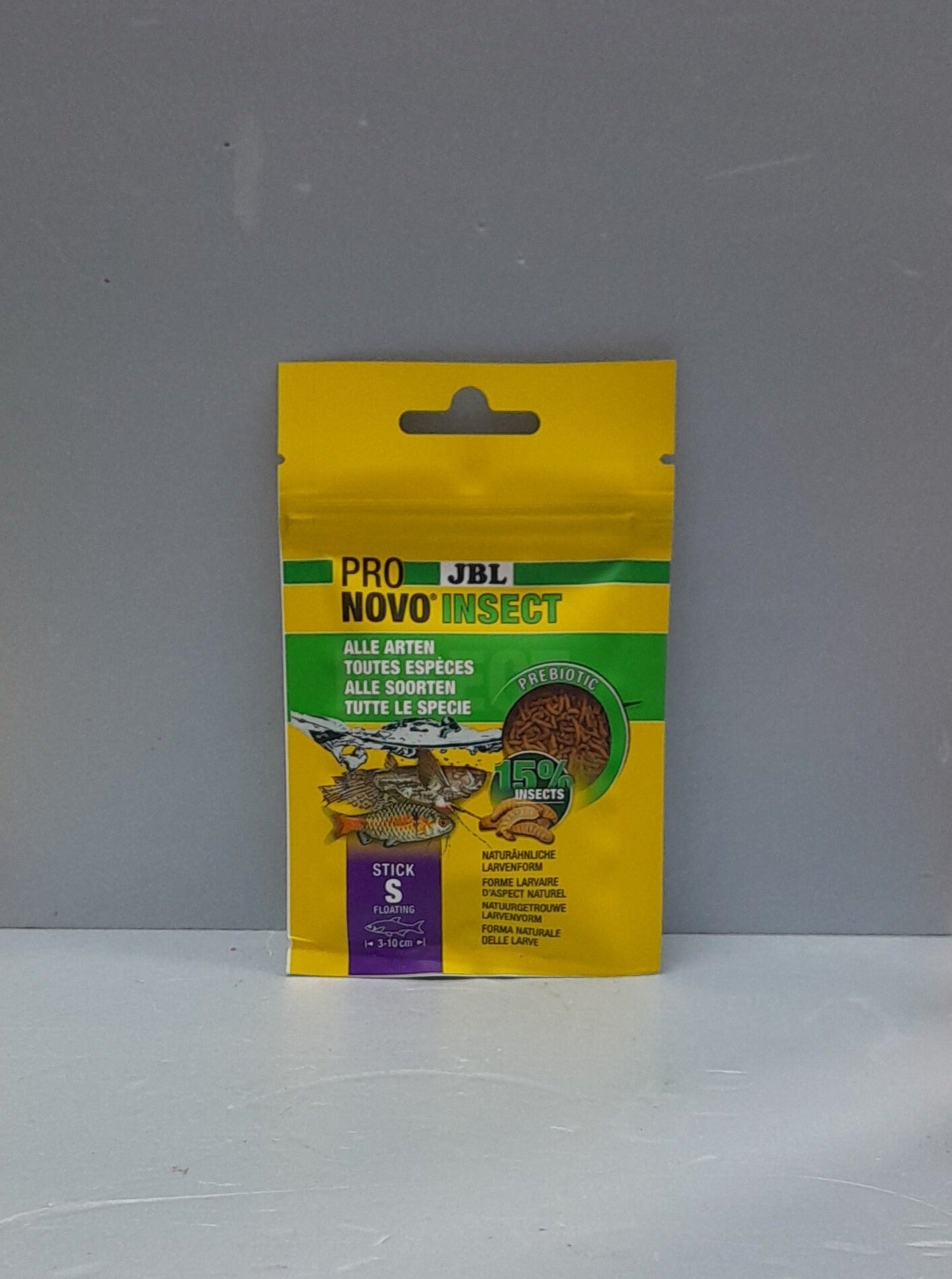 Pro novo insect è uno stick galleggiante che riprende la forma naturale delle larve, contiene il 15% di insetti ed è un mangime adatto a tutte le specie di pesci ornamentali.