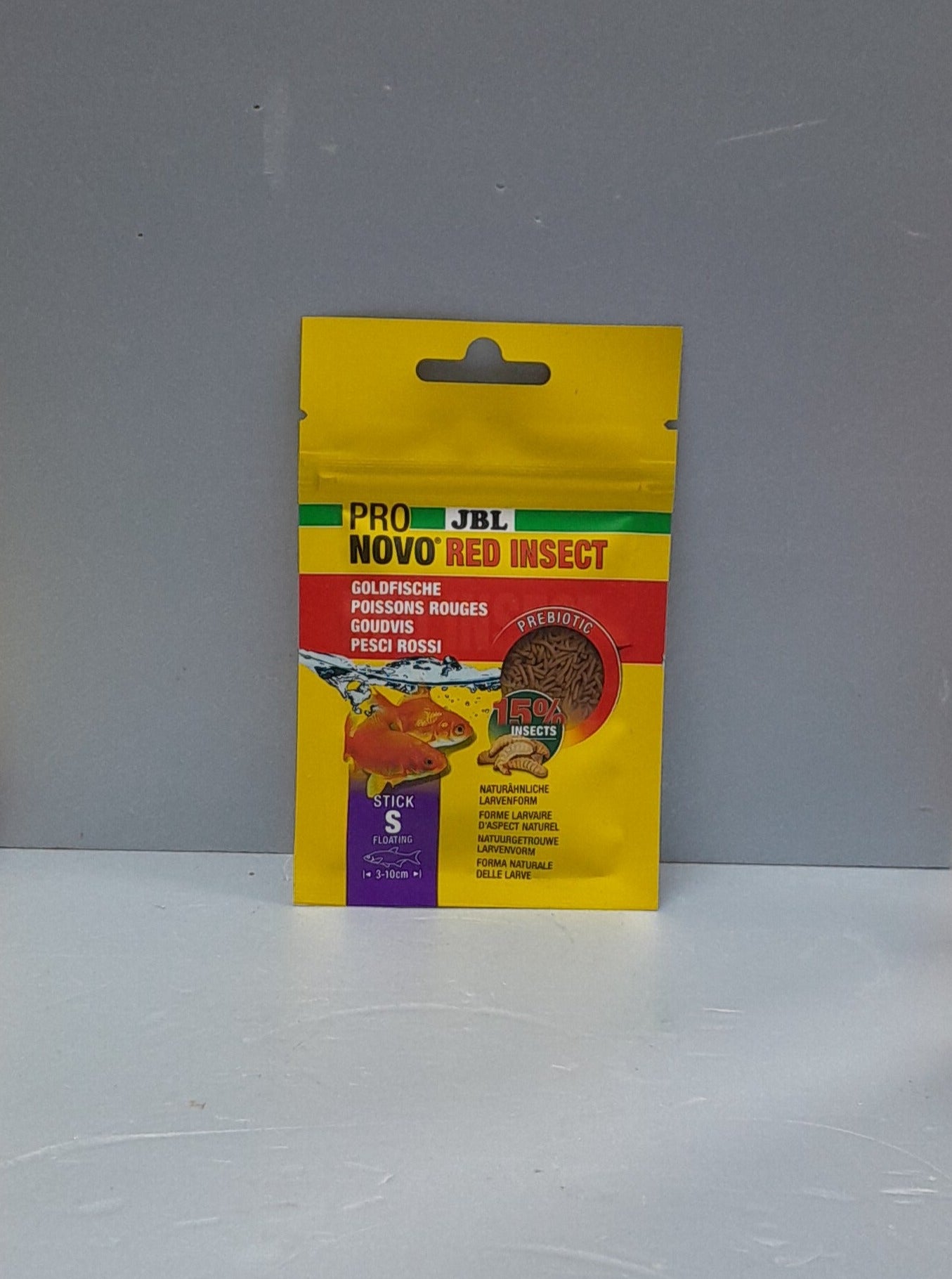 Pro novo red insect è un mangime semi-galleggiante adatto a tutte le specie di pesci rossi. Altamente gradito la sua forma a stick riprende quelle delle larve per aumentarne l'appetibilità. Contiene il 15% di farina di insetti
