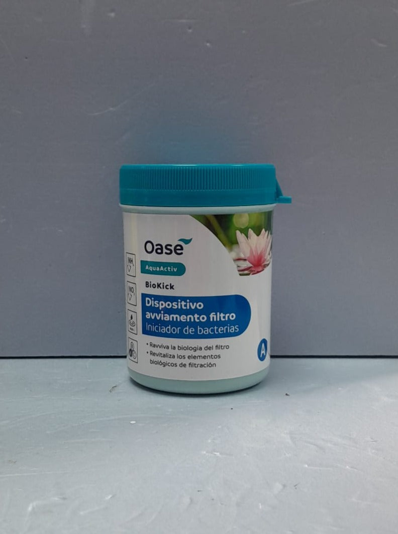 La coltura secca BioKick accelera il deposito del biofilm in un filtro per laghetto. Si basa su ceppi batterici eterotrofici e stimola immediatamente la disintossicazione di ammonio, ammoniaca e nitrito nello stagno. Con più di 10 milioni di microrganismi attivi per ml, i ceppi batterici sono gli specialisti nella degradazione di componenti organici, come ad esempio escrementi di pesce. BioKick è un prodotto totalmente biologico, privo di germi patogeni. È adatto per l'uso con i nuovi filtri per laghetto, per un'ampia pulizia del filtro o per cambiare l'acqua e porta il sistema di filtraggio alla massima potenza in poche settimane.