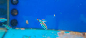 Paracheirodon simulans è, nella forma e nel colore, molto simile al paracheirodon axelrodi. La livrea è di poco differente: presenta testa e dorso grigio-verdi; dal muso parte una fascia orizzontale blu elettrico che termina al peduncolo caudale. Le pinne sono trasparenti, con minuti raggi biancastri. La gola è rossastra perché trasparente e lascia intravedere il sistema respiratorio branchiale, il ventre è beige argenteo mentre il resto del corpo sotto la linea blu è rosso sbiadito, tendete al grigio-verde.