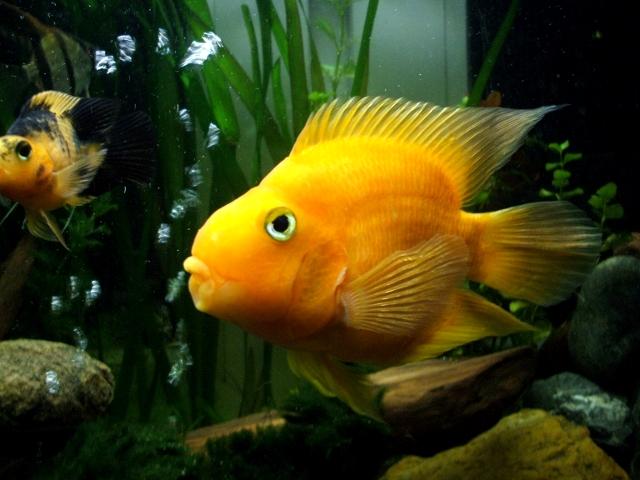 Esemplari giovani di pesce parrot, ciclidi sud americani che possono raggiungere grandi dimensioni.