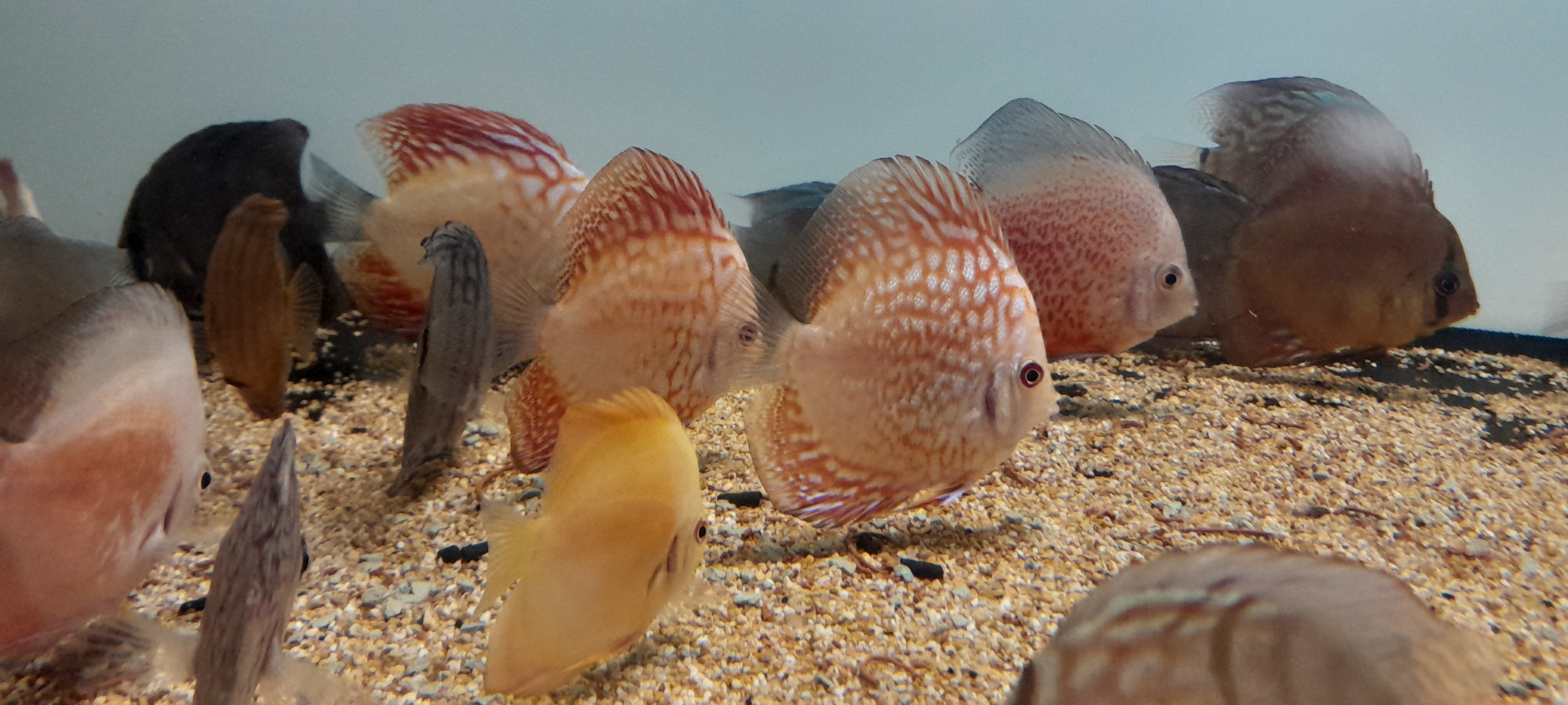 I pesci discus sono molto pacifici, evitano il conflitto scappando o intimidendo l'avversario. Nella maggior parte degli acquari, sono uno dei pesci più grandi e dai colori più vivaci.