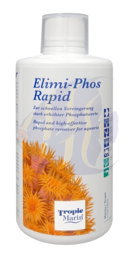 ropic Marin® Elimi-Phos Rapid è una soluzione altamente efficace a base di lantanio che si lega molto rapidamente con il fosfato e lo sottrae dall'acqua in modo efficiente. La concentrazione di fosfato può essere ridotta in brevissimo tempo nel campo tra 0,2–0,4 mg/l. La qualità dell'acqua migliora molto rapidamente, i coralli splendono di nuovi colori e crescono più forti.